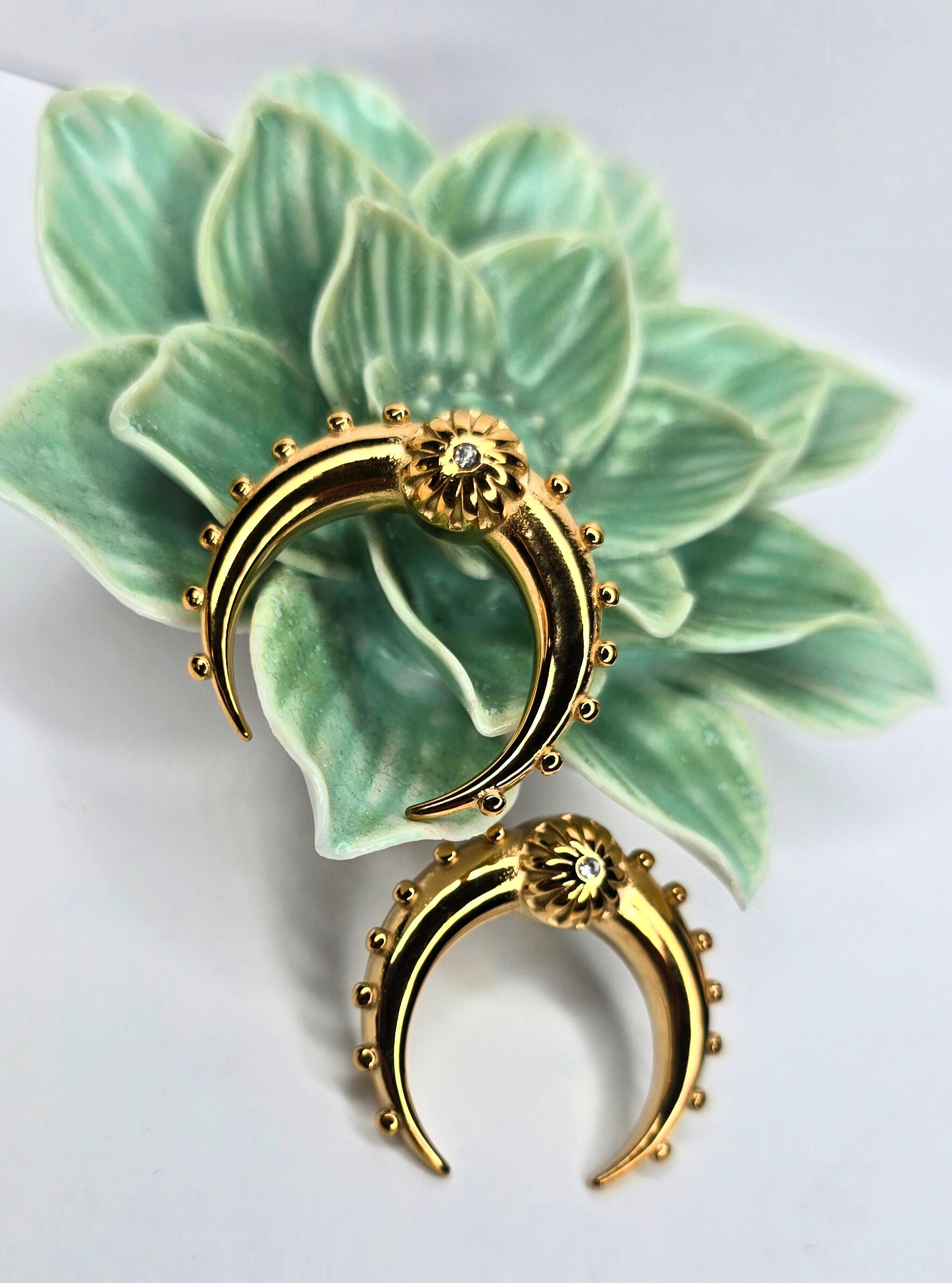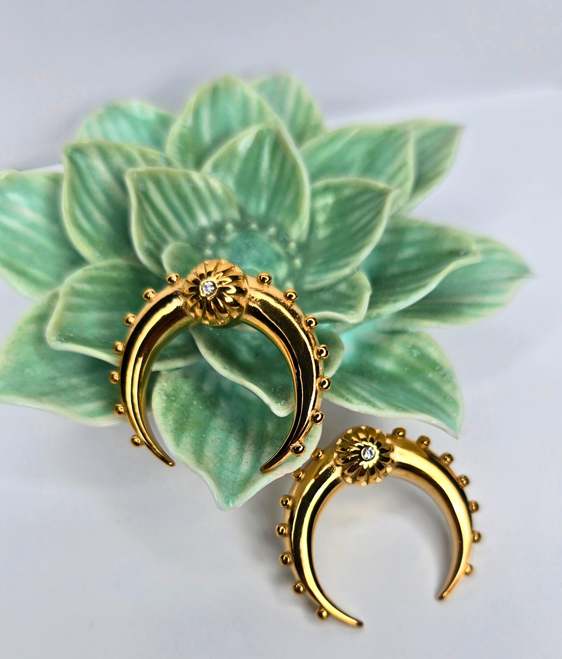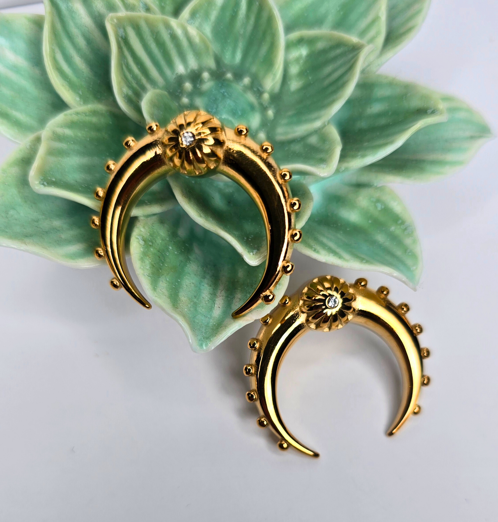 Elevate any outfit with a touch of sophistication and style with these stunning horn shaped earrings. Their modern tribal design captures every gaze, while the delicate zirconia inlay adds a subtle, elegant sparkle. Made from stainless steel and water resistant, they are perfect for special occasions and for those seeking durability without sacrificing style.